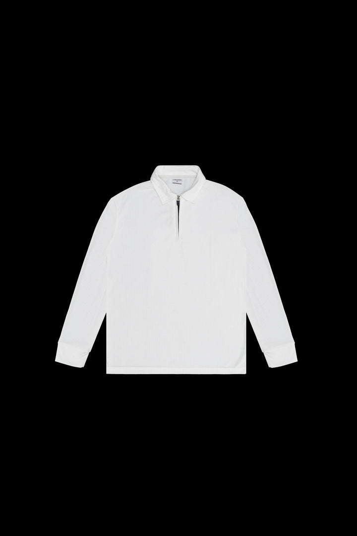 CHEST LENGTH SMALL 19 26 MEDIUM 20 27 LARGE 21 28 Elevate your style with this sleek grey long-sleeve shirt. Featuring a subtle ribbed texture and a modern half-zip design, it's perfect for a clean, minimalist look. Ideal for casual wear or semi-formal occasions.